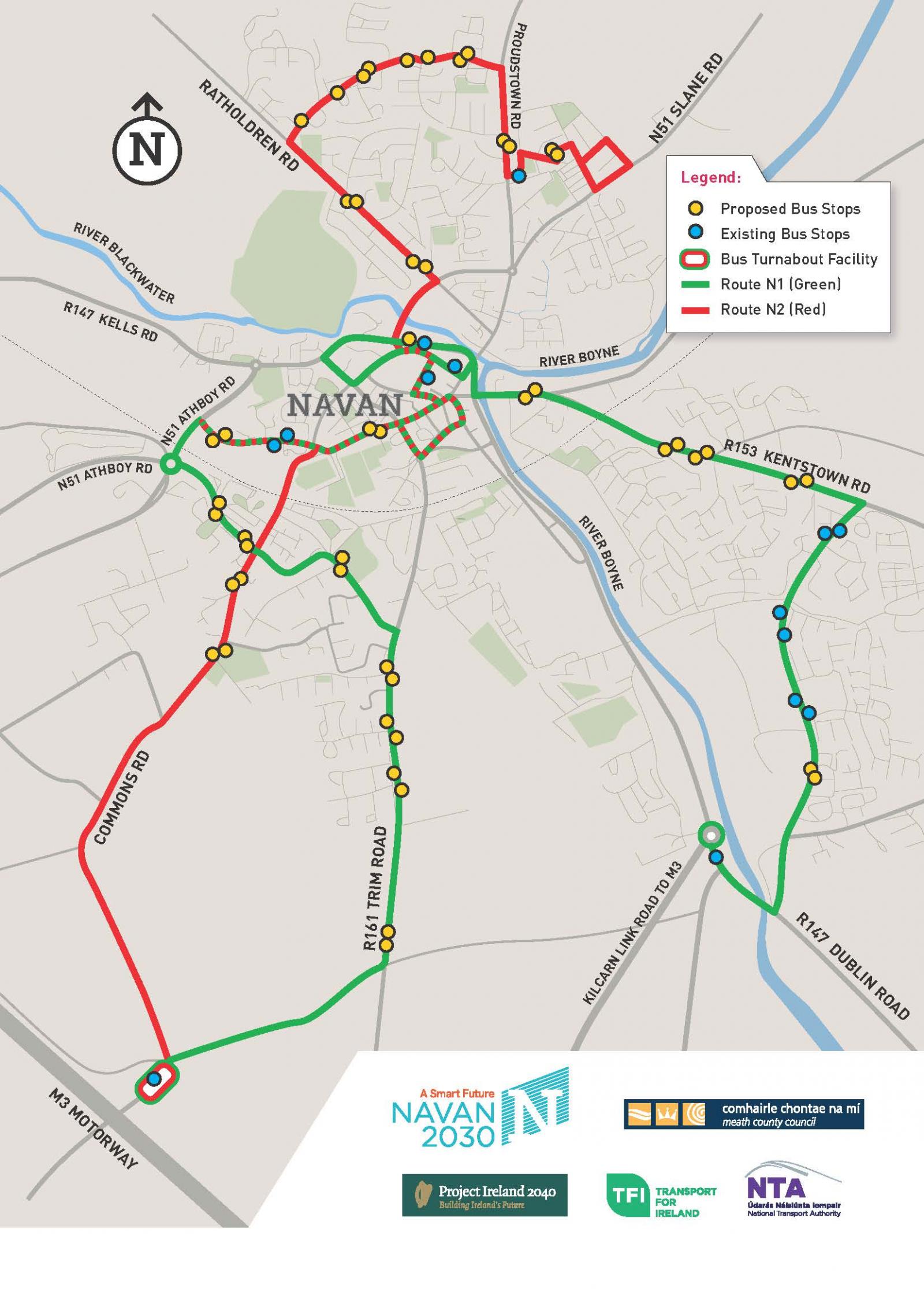 NAVAN TOWN BUS ROUTES N1 AND N2 AND BUS STOPS INFRASTRUCTURE