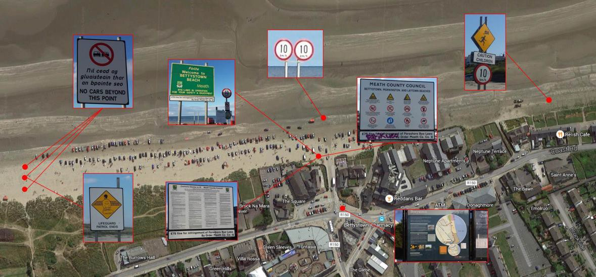There is a large amount of signage in and around Bettystown / Laytown relating to the beach. This broadly falls into the following categories.